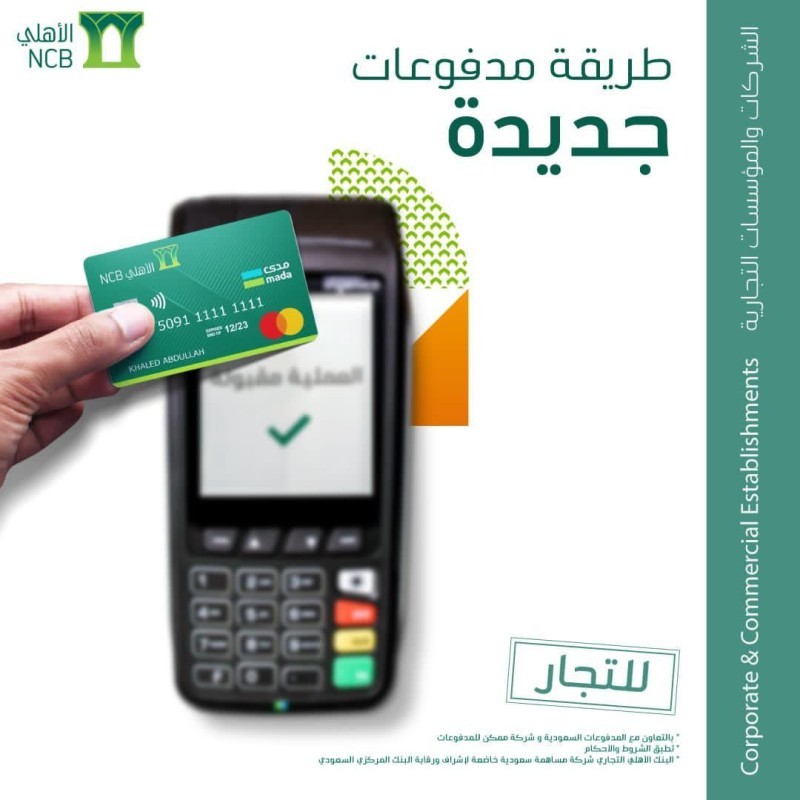 يُذكر أن أجهزة نقاط البيع الخاصة بالبنك الأهلي التجاري تتيح فرصاً متعددة للعملاء من الشركات والمؤسسات الفردية بتحصيل قيمة عمليات البيع آلياً وقبول بطاقات متعددة بكل سهولة وأمان.