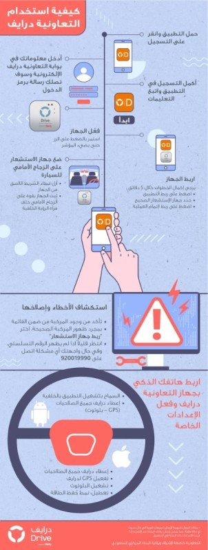 وقال مدير التحكم بالمخاطر في فسم السيارات بشركة التعاونية للتأمين، عبدالله العطر:«سيتم من خلال إعداد جهاز الاستشعار الذي سيمنح المنضمين نقاط (التعاونية درايف)، وسيجمع البرنامج بيانات القيادة الخاصة بهم، بما في ذلك التسارع والمكابح (الفرامل) بسلاسة، والانعطاف بسلاسة، والقيادة عند حدود السرعة، وعدم استخدام الهاتف المحمول أثناء القيادة، بالإضافة إلى العوامل الأخرى التي تؤثر على سلوك القيادة، مثل قيادة المركبات في وقت متأخر، أو المسافة التي يقطعها السائق ليلًا، لذلك سيتأثر التصنيف بعدد النجوم الممنوحة لكل رحلـة بناء على سلوك القيادة».