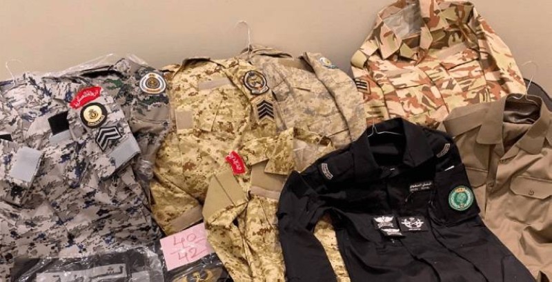 أغلقت اللجنة الأمنية لمتابعة محلات تفصيل الملابس العسكرية في إمارة منطقة الرياض (3) محلات لتفصيل ملابس عسكرية تعمل دون تراخيص، كما ضبطت (400) بدلة لقطاعات عسكرية مختلفة بعضها مستورد من خارج المملكة، و(8000) قطعة من الأنواط والرتب والشعارات العسكرية المخالفة، كما تم ضبط وتسليم مقيمين اثنين من جنسية عربية إلى الدوريات الأمنية يقومون ببيع رتب عسكرية تمهيداً لعرضهم على النيابة العامة.
