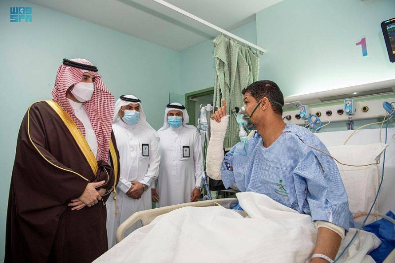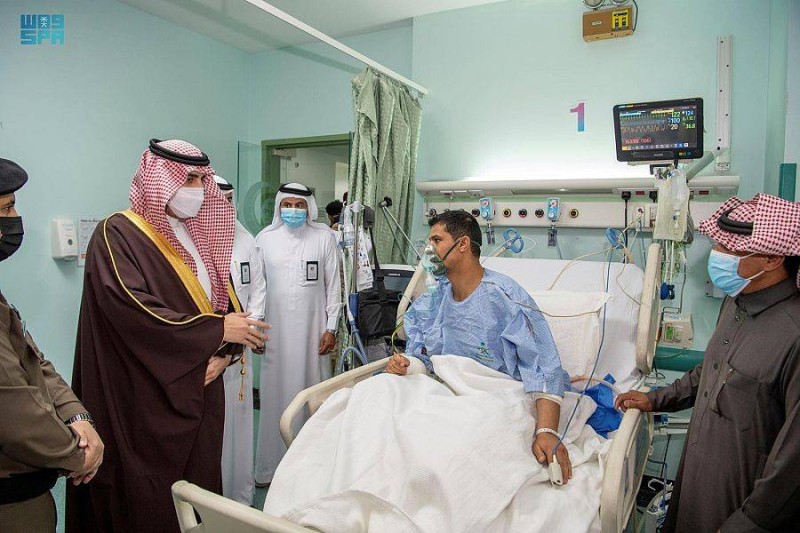 وكان في استقباله لدى وصوله المستشفى، ‏مدير شرطة المنطقة اللواء محمد بن مبارك الوذيناني، ومدير عام الشؤون الصحية بالمنطقة فارس بن مخيلف الرويلي، ووالد الرقيب المصاب.