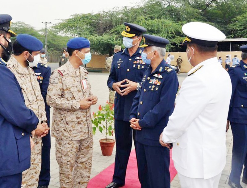 زار قائد قاعدة الملك عبدالعزيز الجوية بالقطاع الشرقي اللواء الطيار الركن عيد براك العتيبي أمس الأول (الإثنين) مجموعة القوات الجوية الملكية السعودية المشاركة في مناورات التمرين الجوي المختلط (مركز التفوق الجوي 2021 ) بجمهورية باكستان، وكان في استقباله نائب رئيس الأركان الجوية الباكستانية الفريق سيد نعمان علي هاي والملحق العسكري السعودي لدى باكستان اللواء الطيار الركن عوض عبدالله الزهراني، وقائد مجموعة القوات الجوية الملكية المشاركة في التمرين المقدم الطيران الركن فايح عبدالرحمن الروقي.