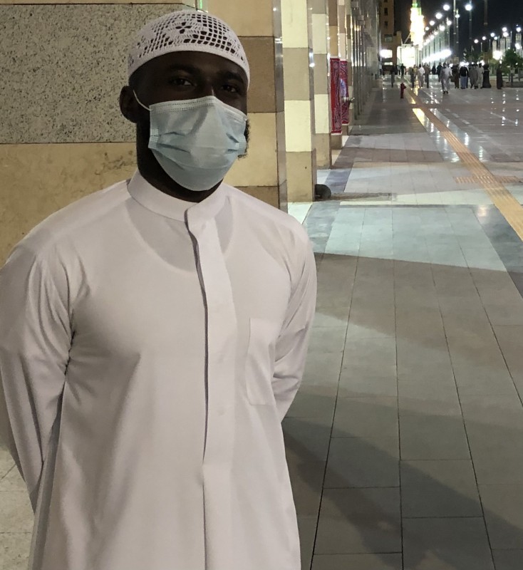 لم يُخفِ الكاميروني أحمد محمد هارون سعادته حين التقته «عكاظ» بجوار المسجد النبوي بعد فراغه من الصلاة؛ وذلك لاقتراب موعد جرعته الأولى من اللقاح ضد كورونا المستجد، التي سيتلقاها يوم غد.