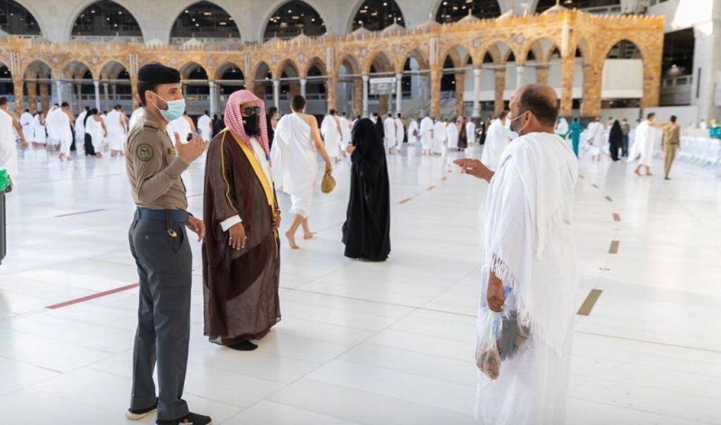 وأشار إلى وجود لجنة خاصة بتطبيق التباعد الجسدي بين الزوار والمصلين عند الخروج والدخول والتي تقوم بدورها بعمل جولات مستمرة على مدار الساعة وأثناء توزيع وجبات الإفطار الفردي وبعد صلاة المغرب، للتأكد من عدم وجود أي مخالفات صحية، والتأكد من تطبيق الإجراءات الاحترازية والبروتوكولات الطبية المعتمدة من وزارة الصحة لمواجهة فايروس كورونا، وتوعية زوار بيت الله الحرام بالتدابير الوقائية الصحية.