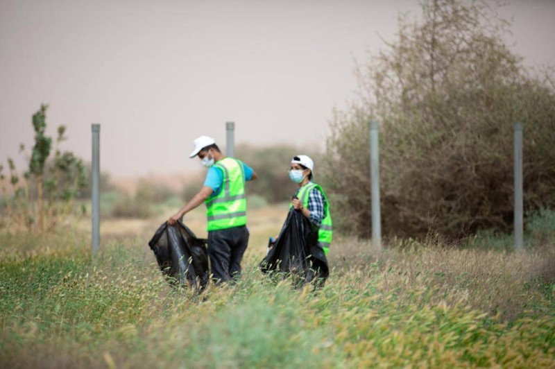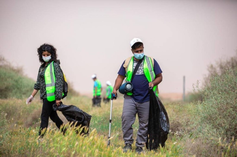 ويشارك متطوعون ومحبون للبيئة في حملة نظافة محمية الملك عبدالعزيز الملكية، بتعاون ووعي المواطن بأهمية البيئة ومشاركته في المحافظة عليها، للوصول إلى بيئة خضراء ومستدامة.