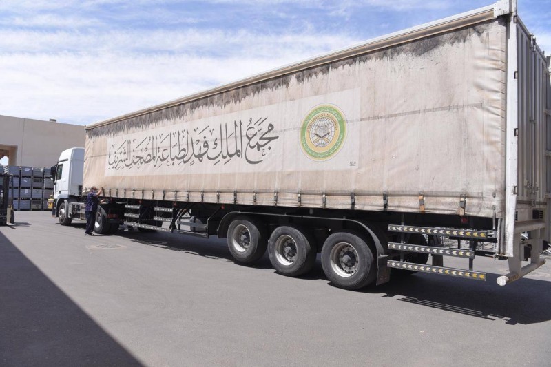 أعلنت وزارة الشؤون الإسلامية والدعوة والإرشاد، أنها -ممثلة بمجمع الملك فهد لطباعة المصحف الشريف- باشرت شحن 1.200.000 نسخة من هدية خادم الحرمين الشريفين من المصاحف بمختلف الأحجام، وترجمات معاني كلمات القرآن الكريم بأكثر من 21 لغة عالمية إلى 29 دولة بجميع قارات العالم.