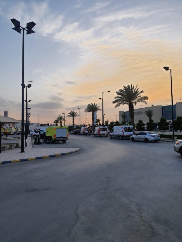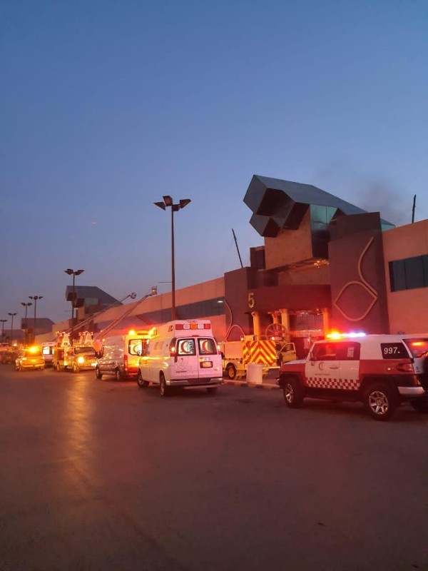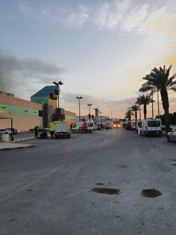 وقال المتحدث باسم هيئة الهلال الالأحمر السعودي بمنطقة الرياض ياسر الجلاجل إن غرفة العمليات تلقت بلاغاً عن حريق بإحدى الأسواق التجارية شمال الرياض عند 17:22 وتم توجيه 4 فرق إسعافية للموقع على الفور، إذ تمت معالجة 9 حالات مصابة باختناق ونقل حالة واحدة.