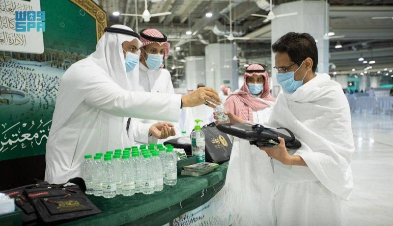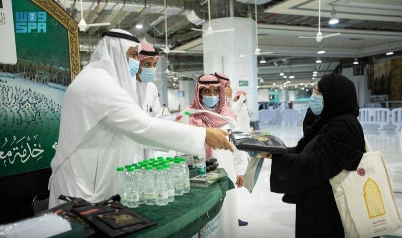 شؤون الحرمين توزع الهدايا على المصلين والمعتمرين