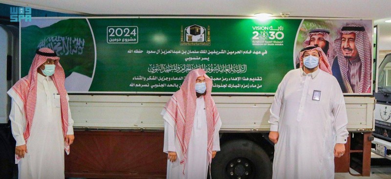 دشّن الرئيس العام لشؤون المسجد الحرام والمسجد النبوي الشيخ الدكتور عبدالرحمن بن عبدالعزيز السديس اليوم (الأربعاء)، مبادرة إهداء ماء زمزم لجنودنا البواسل، التي تأتي عرفاناً لما سطروه من بطولات وتضحيات في حماية الثغور بالحد الجنوبي.