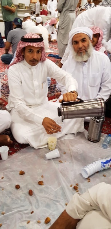 بداية، يقول باسم سالم الحجيلي: «منذ صغري كنت أرافق والدي -رحمه الله- لتقديم وجبات الإفطار، حيث لنا سفرة شرفنا الله بها لخدمة الزوار وكسب أجر تفطير الصائمين بالمسجد النبوي، وكنت أسترق السمع والنظر أحياناً لزائر قارئ لكتاب الله وآخر يتعبد، وآخر يتلهف لسماع الأذان، وغيرهم تردد ألسنتهم حمداً لله أن منّ عليه بالصيام والقيام في مسجد المصطفى صلى الله عليه وسلم، فيما تتخلل ابتهالاتهم دعوة خاصة لا تخلو بعد شكر الله، من الدعاء لأصحاب هذه السفر الممتدة في الردهات». ويتابع الحجيلي: «اليوم أتوجه إلى الحرم وأنا أسير على خطى الذكريات بسبب الإجراءات الاحترازية، فقد حرمتنا الجائحة من لذة تفطير الصائمين، وعزاؤنا في هذا الشوق أن ما حرمنا هو حمايتنا وحماية من نحب».