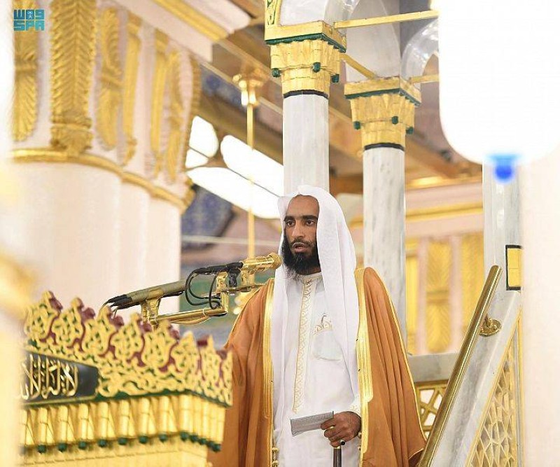وأمَّ المصلين إمام وخطيب المسجد النبوي الشيخ أحمد بن طالب بن حميد، الذي كبر الله تعالى وحمده على ما من به على المسلمين من صيام وقيام الشهر الفضيل حتى أشهدهم يوم الجوائز ليكبروا الله على ما هداهم.