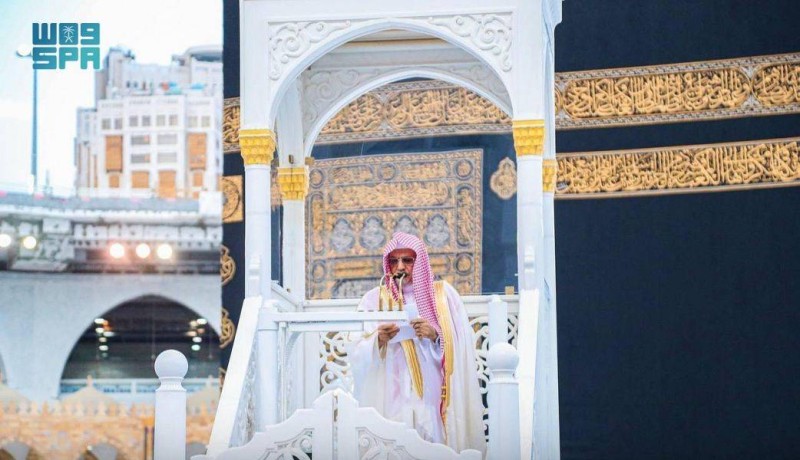 وأم المصلين المستشار بالديوان الملكي إمام وخطيب المسجد الحرام الشيخ الدكتور صالح بن عبدالله بن حميد، حيث حمد الله تعالى وأوصى المسلمين بتقوى الله ، عزوجل.