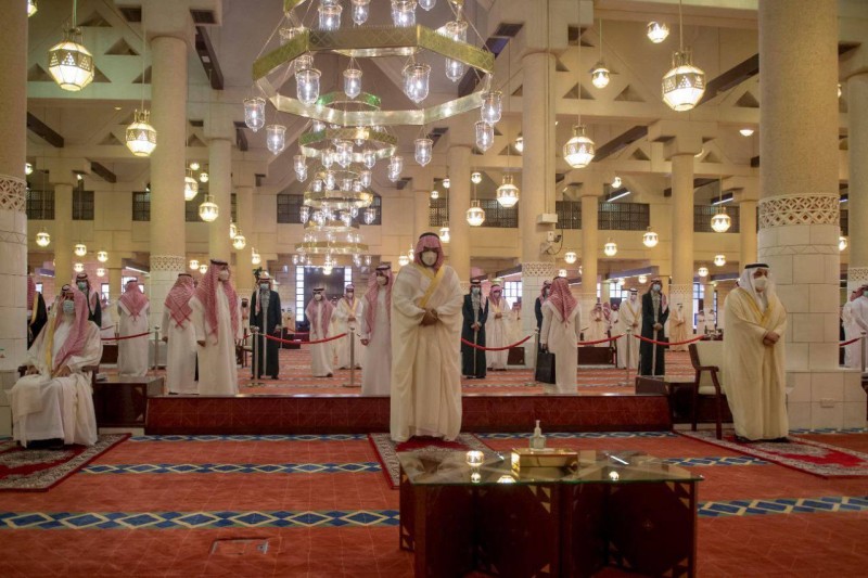 كما أدى الصلاة: أمير منطقة الرياض الأمير فيصل بن بندر بن عبدالعزيز، والأمير بندر بن سلطان بن عبدالعزيز، والأمير خالد بن سعد بن عبدالعزيز، والأمير متعب بن ثنيان بن محمد، والأمير بندر بن مساعد بن عبدالعزيز، والأمير خالد بن سعد بن فھد، ومستشار خادم الحرمين الشريفين الأمير خالد بن بندر بن عبدالعزيز، والأمير الدكتور عبدالرحمن بن سعود الكبير، ومستشار خادم الحرمين الشريفين الأمير محمد بن نواف بن عبدالعزيز، ومستشار خادم الحرمين الشريفين الأمير فيصل بن خالد بن عبدالعزيز، والأمير سعود بن عبدالله بن ثنيان، والأمير الدكتور فيصل بن محمد بن سعود بن عبدالعزيز، والأمير نواف بن محمد بن عبدالله، والأمير نھار بن سعود بن عبدالعزيز، والمستشار في الديوان الملكي الأمير الدكتور تركي بن سعود بن محمد، والأمير نايف بن سعود بن عبدالعزيز، ومحافظ الدرعية الأمير أحمد بن عبدالله بن عبدالرحمن، ووزير الطاقة الأمير عبدالعزيز بن سلمان بن عبدالعزيز، والأمير سعد بن عبدالله بن عبدالعزيز بن مساعد، ومستشار خادم الحرمين الشريفين الأمير الدكتور عبدالعزيز بن سطام بن عبدالعزيز، والأمير منصور بن ثنيان بن محمد، والمستشار في الديوان الملكي الأمير بندر بن خالد الفيصل، والأمير عبدالرحمن بن مساعد بن عبدالعزيز، والأمير بندر بن فهد بن محمد بن عبدالعزيز، والأمير سعود بن عبدالله بن محمد، والأمير محمد بن بدر بن محمد، والأمير فهد بن محمد بن عبدالله بن عبدالرحمن، ووزير الخارجية الأمير فيصل بن فرحان بن عبدالله، والأمير سلمان بن سلطان بن عبدالعزيز، والأمير عبدالحكيم بن مساعد بن عبدالعزيز، والأمير سطام بن خالد بن ناصر بن عبدالعزيز، والأمير عبدالعزيز بن محمد بن سعد بن عبدالرحمن، والأمير بندر بن مقرن بن عبدالعزيز، والأمير نايف بن سلطان بن عبدالعزيز، والأمير بندر بن فيصل بن تركي بن عبدالله بن جلوي، ووزير الدولة عضو مجلس الوزراء الأمير تركي بن محمد بن فھد بن عبدالعزيز، والأمير عبدالله بن خالد بن بندر بن محمد بن عبدالعزيز، والأمير سلطان بن عبدالعزيز بن محمد بن فرحان، والأمير محمد بن منصور بن متعب بن عبدالعزيز، والأمير سعود بن سلطان بن عبدالعزيز، ومساعد رئيس الاستخبارات العامة الأمير بندر بن فيصل بن بندر بن عبدالعزيز، والأمير سعد بن تركي بن فهد بن مشاري بن جلوي، والأمير فهد بن خالد بن سلطان بن عبدالعزيز، والأمير سعود بن سلمان بن عبدالعزيز، والأمير سلطان بن خالد بن فيصل بن تركي، والأمير مشعل بن سلطان بن عبدالعزيز، وسفير خادم الحرمين الشريفين لدى النمسا الأمير عبدالله بن خالد بن سلطان بن عبدالعزيز، والأمير سلمان بن محمد بن نواف بن عبدالعزيز، والأمير عبدالإله بن فهد بن بندر بن محمد، والأمير سلطان بن عبدالله بن سعود بن عبدالعزيز، والأمير عبدالعزيز بن فيصل بن عبدالمجيد بن عبدالعزيز، والأمير مشهور بن عبدالله بن عبدالعزيز، والأمير سلطان بن سعود بن محمد بن سعود، والأمير عبدالله بن خالد بن سعد بن فهد، والأمير بدر بن خالد بن ثنيان بن محمد، والأمير عبدالعزيز بن نواف بن مساعد بن سعود بن عبدالعزيز، والأمير سلمان بن عبدالله بن محمد بن جلوي، والأمير نواف بن يوسف بن مساعد بن عبدالعزيز، والأمير محمد بن سعود بن فهد بن عبدالعزيز، والأمير عبدالله بن سعود بن عبدالله بن ثنيان، والأمير عبدالمجيد بن عبدالإله بن عبدالعزيز، والأمير سلمان بن خالد بن سلطان بن عبدالعزيز، والأمير فيصل بن عبدالإله بن فيصل بن سلمان، والأمير فيصل بن أحمد بن سلمان بن عبدالعزيز، والأمير فيصل بن محمد بن فيصل بن بندر بن عبدالعزيز، والأمير عبدالإله بن سعود بن عبدالله بن ثنيان، والأمير تركي بن ممدوح بن مشاري، والأمير عبدالعزيز بن منصور بن ثنيان، والأمير خالد بن محمد بن بدر بن محمد، والأمير بندر بن عبدالعزيز بن عياف، وأمين منطقة الرياض الأمير فيصل بن عبدالعزيز بن عياف، والأمير فيصل بن تركي بن سعد بن مقرن، والأمير مشاري بن فهد بن مشاري بن عياف، والأمي