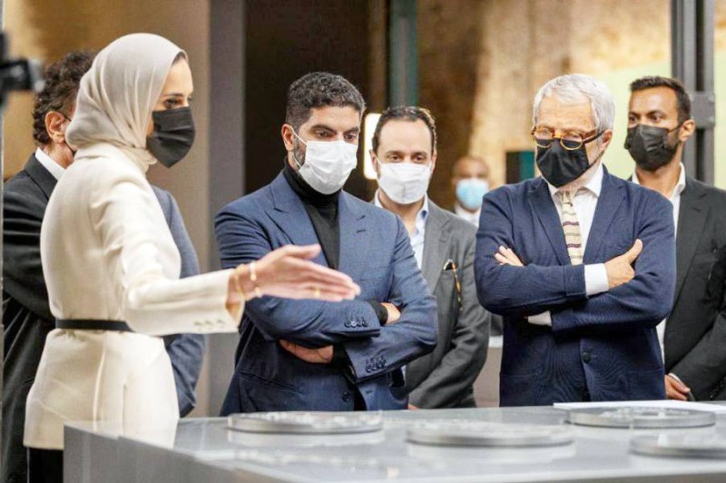 وزير الثقافة يستمع إلى شرح عن محتويات جناح المملكة المشارك في بينالي البندقية للعمارة.