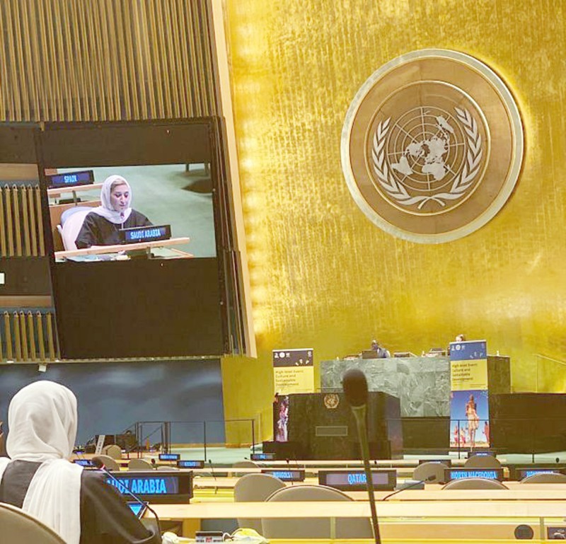 جاء ذلك في كلمة المملكة أمس الأول (الجمعة) خلال الاجتماع رفيع المستوى للثقافة والتنمية المستدامة الذي نظمته الجمعية العامة للأمم المتحدة بالتعاون مع منظمة الأمم المتحدة للتربية والعلم والثقافة، التي ألقتها رئيسة اللجنة الثانية بوفد المملكة الدائم لدى الأمم المتحدة سارة عاشور، التي لفتت النظر إلى أن وزارة الثقافة في المملكة حرصت على تقديم تقرير مفصّل عن «الحالة الثقافيّة» بشكلٍ سنوي؛ بهدف رصد مظاهر التحولات والتطورات الثقافيّة لديها بشكل علمي والبناء عليها لفحص مظاهر التقدم في تحقيق المستهدفات ولرسم إستراتيجيات التحول المستقبليّة.