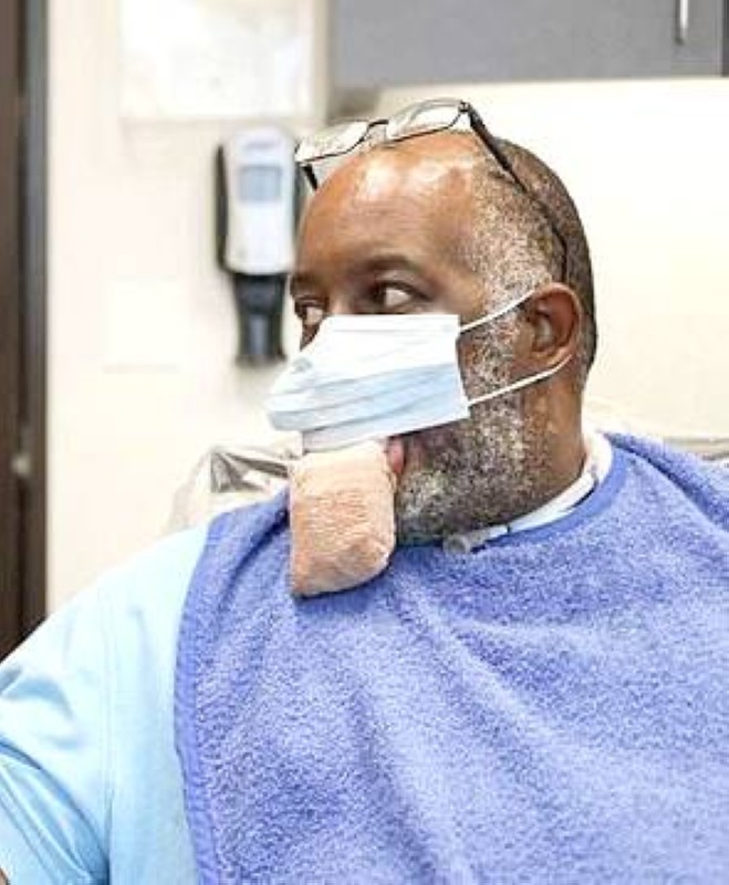 جونز أثناء تلقيه العلاج من تضخم اللسان في هيوستن.
