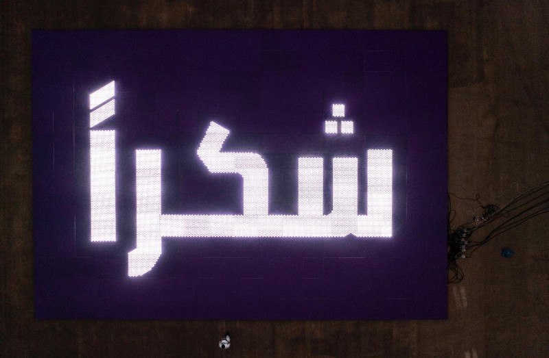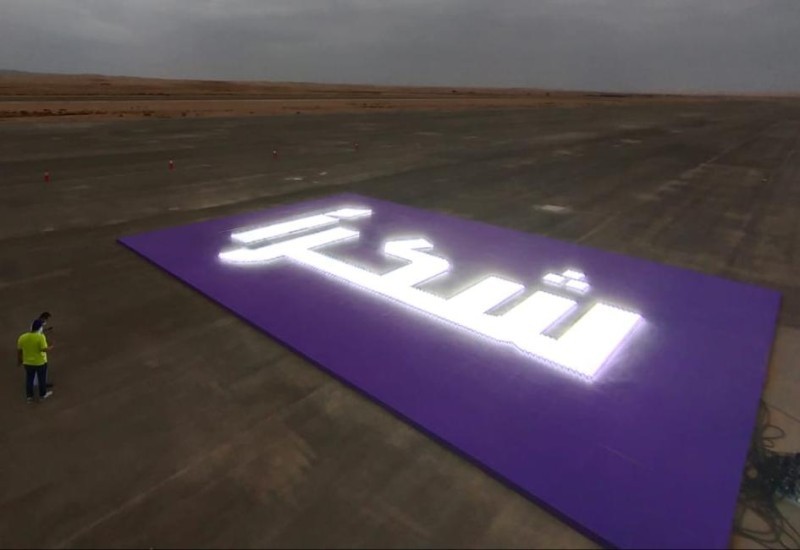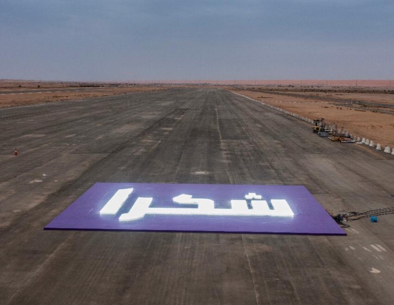وبلغ حجم تصميم كلمة «شكراً» الأكبر في العالم 280 متراً مربعاً، واستغرق العمل على المشروع 3 أيام عمل متواصلة، إذ استخدم فيها 8015 مصباحاً من نوع ليد (LED)، كما جاءت الخلفية لتعكس ألوان شعار الشركة، وجرى العمل على عرض اللوحة على مدرج المطار الذي يتمركز على بعد 60 كيلومترا شمالاً من وسط العاصمة الرياض.