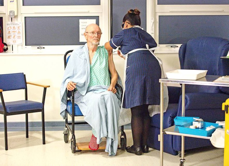 شكسبير عند تطعيمه في 8 ديسمبر 2020. (وكالات)