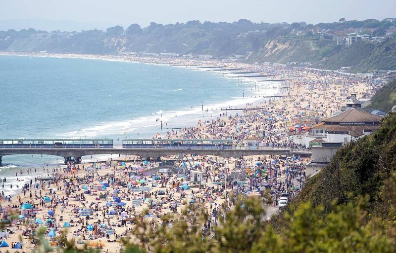 الآلاف سارعوا لارتياد شاطئ برونيموث أمس للاستمتاع بالشمس والدفء. (وكالات)