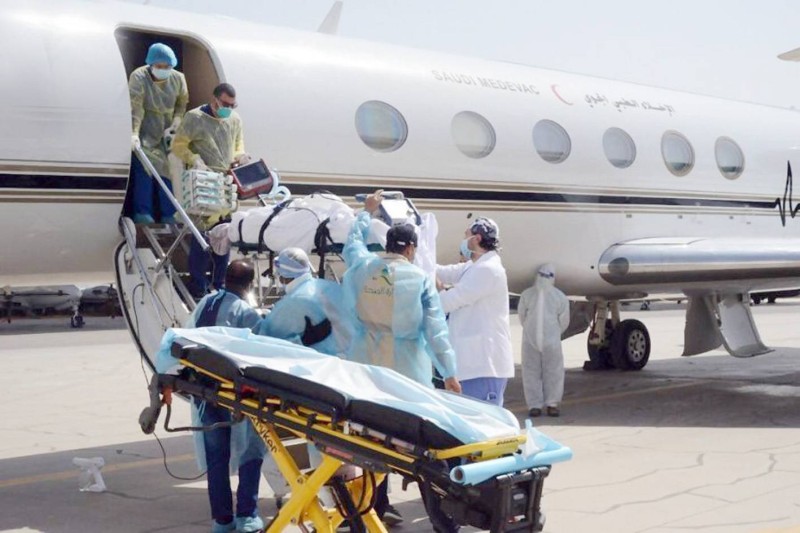 إنفاذاً لتوجيهات ولي العهد نائب رئيس مجلس الوزراء وزير الدفاع الأمير محمد بن سلمان بن عبدالعزيز، قامت إدارة الإخلاء الطبي الجوي التابعة للخدمات الصحية بوزارة الدفاع بنقل مواطن سعودي مصاب بفايروس كورونا (كوفيد 19) من المملكة الأردنية الهاشمية إلى المملكة العربية السعودية بالتعاون مع فريق طبي مختص من وزارة الصحة. ويعاني المواطن من مضاعفات إصابته بالفايروس، وتطلبت حالته استخدام جهاز الأكسجة الغشائية خارج الجسم الإيكمو (ECMO) أثناء النقل بطائرة الإخلاء الطبي الجوي. وكانت طائرات الإخلاء الطبي الجوي نقلت أكثر من 75 حالة مصابة بفايروس كورونا دون إصابة الطواقم الطبية والجوية بالفايروس.