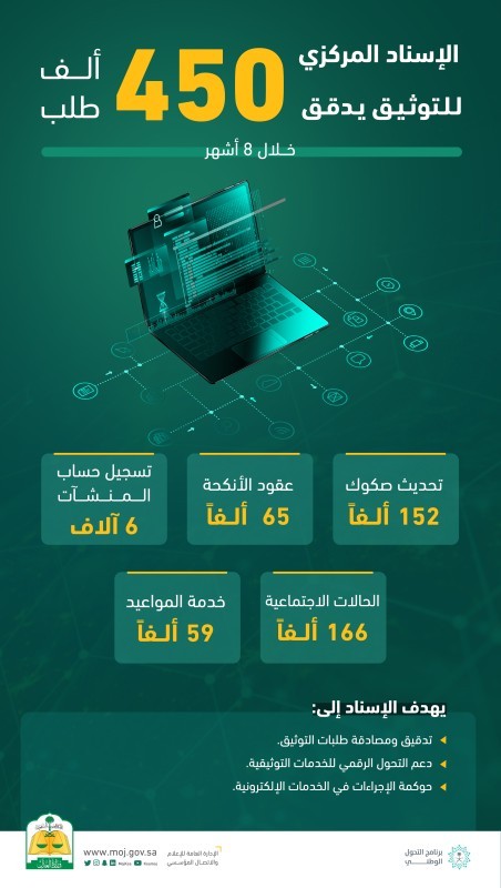 450.000 طلب وثّقه «الإسناد المركزي» بوزارة العدل