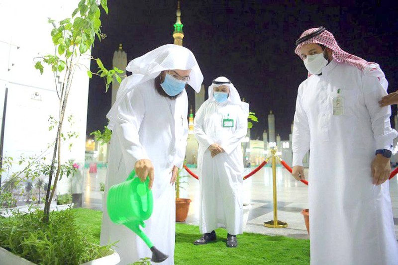 واختتم الرئيس العام لشؤون المسجد الحرام والمسجد النبوي الجولة الميدانية بتدشين «مبادرة التشجير في ساحات المسجد النبوي».