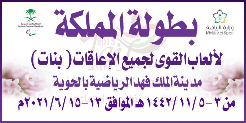 انطلقت مساء اليوم (الأحد) على ملاعب مدينة الملك فهد الرياضية بمحافظة الطائف، أول بطولة رسمية نسائية «بطولة المملكة لألعاب القوى لجميع الإعاقات (سيدات)»، بمشاركة 7 أندية من مناطق المملكة، ومشاركة 85 لاعبة في البطولة التي تستمر خلال الفترة من 3-5 من الشهر الجاري.