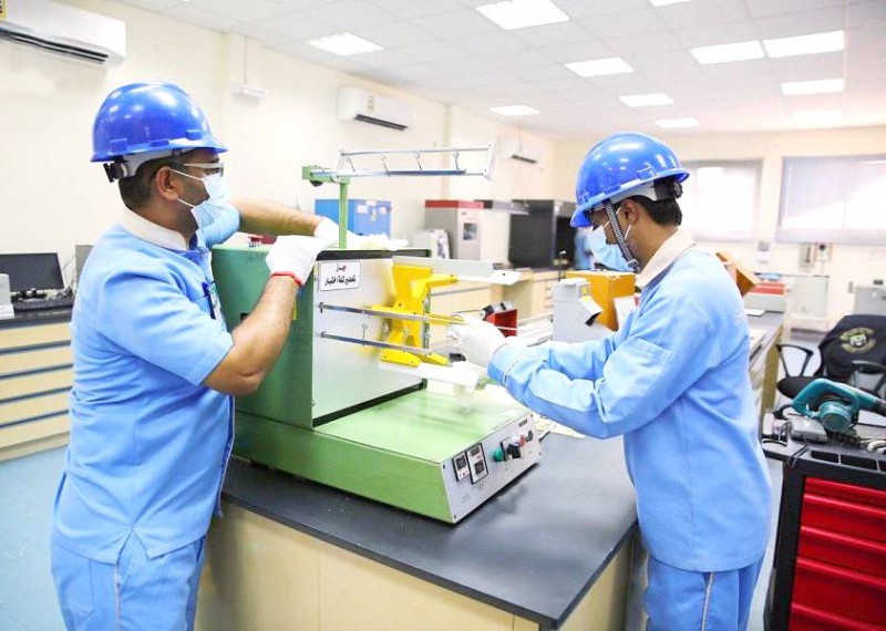 جانب من أعمال الصيانة لأجهزة مختبر مجمع كسوة الكعبة. (واس)