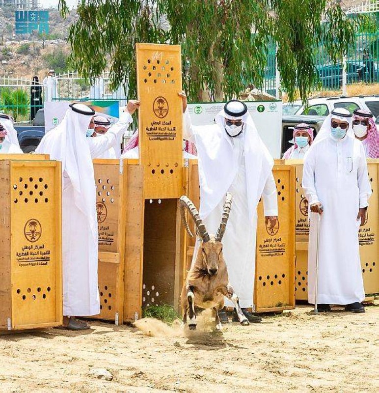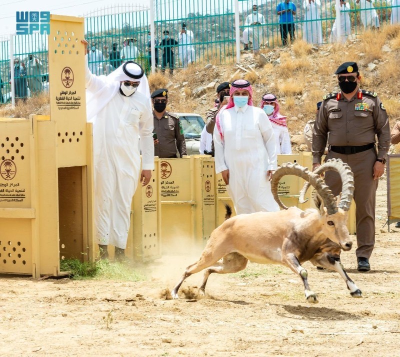 تحت رعاية أمير منطقة الباحة الأمير الدكتور حسام بن سعود بن عبدالعزيز، أطلق المركز الوطني لتنمية الحياة الفطرية اليوم (السبت)، 20 وعلاً جبلياً مهدداً بالانقراض، وذلك في المتنزه الوطني بمحافظة بلجرشي، حيث تعـد هذه الخطوة هي الأولى من نوعها في منطقة الباحة.