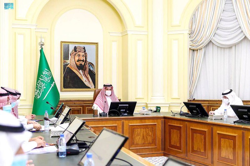 أمير المدينة خلال ترؤسه الاجتماع أمس. (واس)