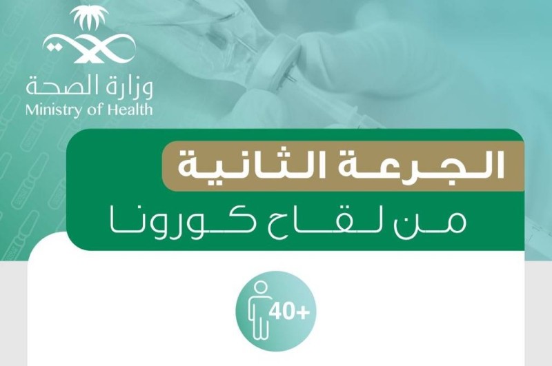 أعلنت وزارة الصحة، اليوم (الأحد)، إتاحة تلقي التطعيم بالجرعة الثانية من اللقاحات المضادة لفايروس كورونا المستجد «كوفيد-19» للفئة العمرية من 40 عاما فأكثر «بالتاريخ الهجري».