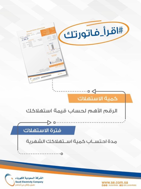 بينت الشركة السعودية للكهرباء، أن تصميم الفاتورة، يتيح للمشترك توقع قيمة ما سيدفعه في الشهر المقبل، كما تساعده على ضبط استهلاكه للطاقة الكهربائية.