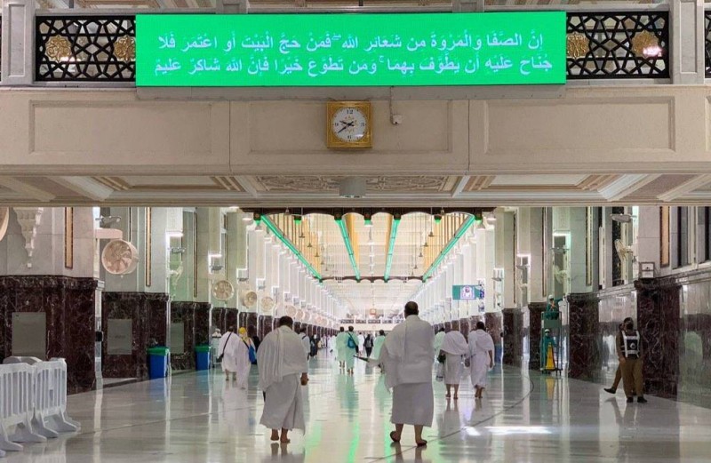 كما خصصت الرئاسة 100 لوحة إرشادية في صحن المطاف لضمان تكامل الخطة التوجيهية الموضوعة للحجاج، وأوضح مدير إدارة الحشود والتفويج بالمسجد الحرام المهندس أسامة الحجيلي أنه تم استخدام 10 لغات عالمية من خلال هذه اللوحات الموضوعة بين مسارات صحن المطاف لإرشاد وتوجيه الحجاج بالالتزام بالمسار لتحقيق التباعد الجسدي حرصاً على سلامة ضيوف الرحمن.