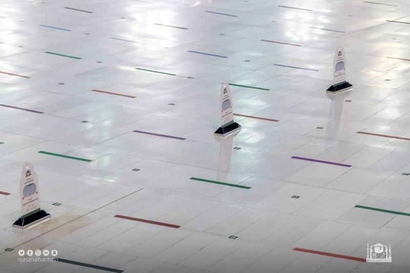 وأوضح مدير إدارة الحشود والتفويج بالمسجد الحرام المهندس أسامة الحجيلي أنه تم تقسيم مواقع التنظيم للرجال والنساء، وذلك من أجل المحافظة على سلامة حجاج بيت لله الحرام خلال أدائهم مناسكهم وحرصاً على سلامتهم حيث إن هذه المواقع تسهم بشكل كبير في تحقيق التباعد الجسدي وتنظيم حركة ضيوف الرحمن.