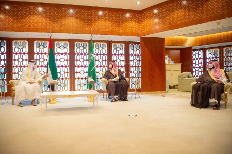 ورحب ولي العهد في بداية الاجتماع بالشيخ محمد بن زايد والوفد المرافق في زيارتهم للمملكة، فيما نقل ولي عهد أبوظبي تحيات رئيس دولة الإمارات العربية المتحدة الشيخ خليفة بن زايد آل نهيان إلى أخيه خادم الحرمين الشريفين الملك سلمان بن عبدالعزيز آل سعود، فيما حمله الأمير محمد بن سلمان تحيات خادم الحرمين الشريفين لرئيس دولة الإمارات.