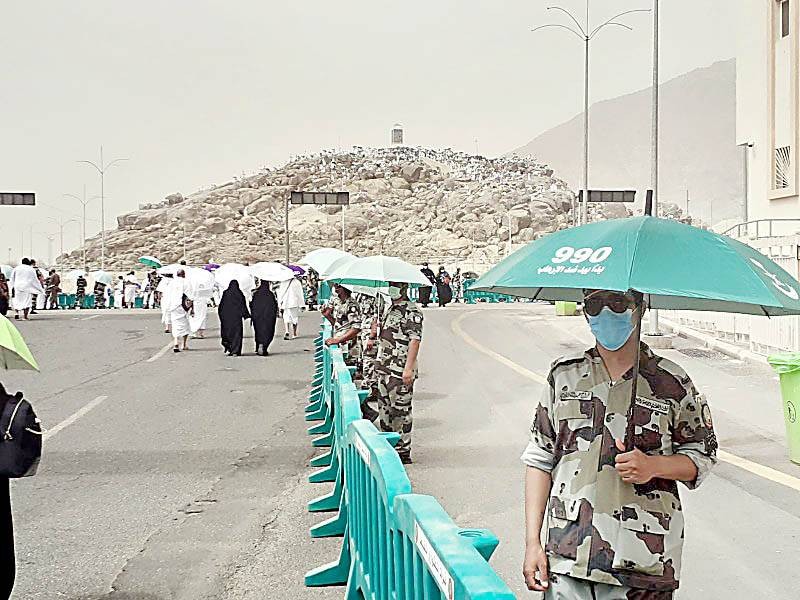 اشرأبّت أعناق الحجاج، وتوحدت قلوبهم في يوم عرفة، وارتفعت أياديهم بالتضرع وصلّوا الظهر والعصر قصراً وجمعاً بأذان وإقامتين. وكانت قوافلهم توافدت إلى صعيد عرفات وسط متابعة أمنية مباشرة نفذتها القطاعات الأمنية التي أحاطت طرق المركبات ودروب المشاة لتنظيمهم حسب خطط تصعيد وتفويج الحجيج إلى جانب إرشادهم وتأمين السلامة اللازمة لهم. وتوفرت في مختلف أنحاء المشعر الخدمات الطبية والإسعافية والتموينية وما يحتاج إليه ضيوف الرحمن الذين قطعوا المسافات وتحملوا المشقة ليؤدوا الركن الخامس من أركان الإسلام حامدين العلي القدير على ما هداهم إليه.