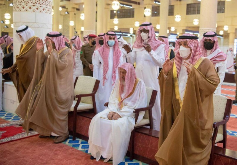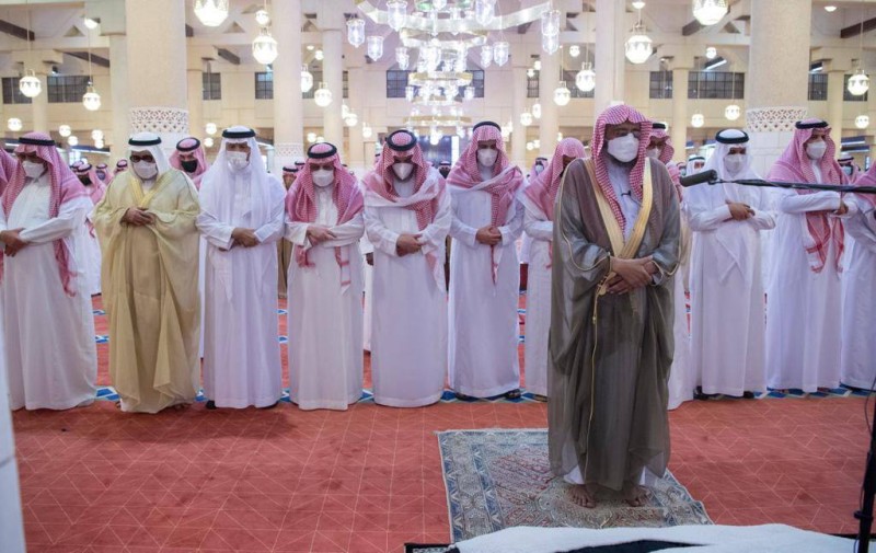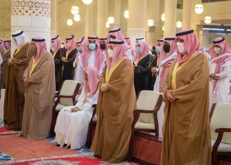 وأدى الصلاة مع أمير الرياض سماحة مفتي عام المملكة رئيس هيئة كبار العلماء الرئيس العام للبحوث العلمية والإفتاء الشيخ عبدالعزيز بن عبدالله آل الشيخ، والأمير منصور بن سعود بن عبدالعزيز، والأمير الدكتور منصور بن متعب بن عبدالعزيز وزير الدولة عضو مجلس الوزراء مستشار خادم الحرمين الشريفين، والأمير نواف بن عبدالله بن محمد بن عبدالرحمن، والأمير عبدالله بن فيصل بن تركي، والأمير سعود بن نايف بن عبدالعزيز أمير المنطقة الشرقية، والأمير سلطان بن سلمان بن عبدالعزيز المستشار الخاص لخادم الحرمين الشريفين، والأمير خالد بن طلال بن عبدالعزيز، والأمير فيصل بن خالد بن عبدالعزيز مستشار خادم الحرمين الشريفين، والأمير نهار بن سعود بن عبدالعزيز، والأمير أحمد بن عبدالله بن عبدالرحمن محافظ الدرعية، والأمير سعود بن عبدالله بن ثنيان.