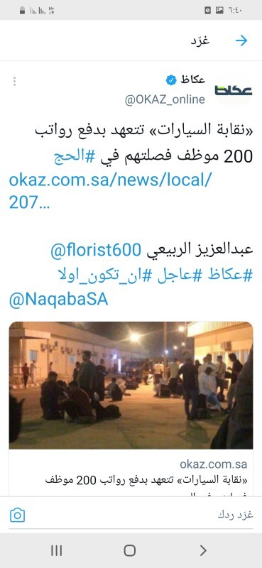 ووعدت النقابة العامة للسيارات بمنطقة مكة المكرمة خلال موسم حج هذا العام بصرف رواتب الشباب الذين حالت الظروف دون مشاركتهم في ارشاد الحافلات الذين يتجاوز عددهم ٢٠٠ شاب. ووعد الحربي في حينه بصرف مستحقاتهم قبل ٢٠ من ذي الحجة. وكانت «عكاظ» تبنت شكوى الشباب السعودي في وقت سابق.