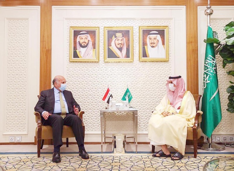 الأمير فيصل بن فرحان خلال استقباله وزير خارجية العراق. (واس)