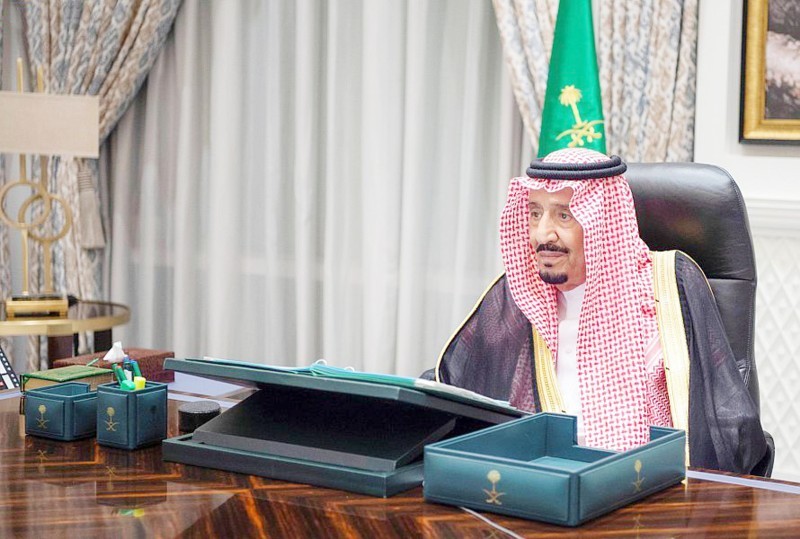 خادم الحرمين الشريفين مترئساً مجلس الوزراء أمس. (واس)