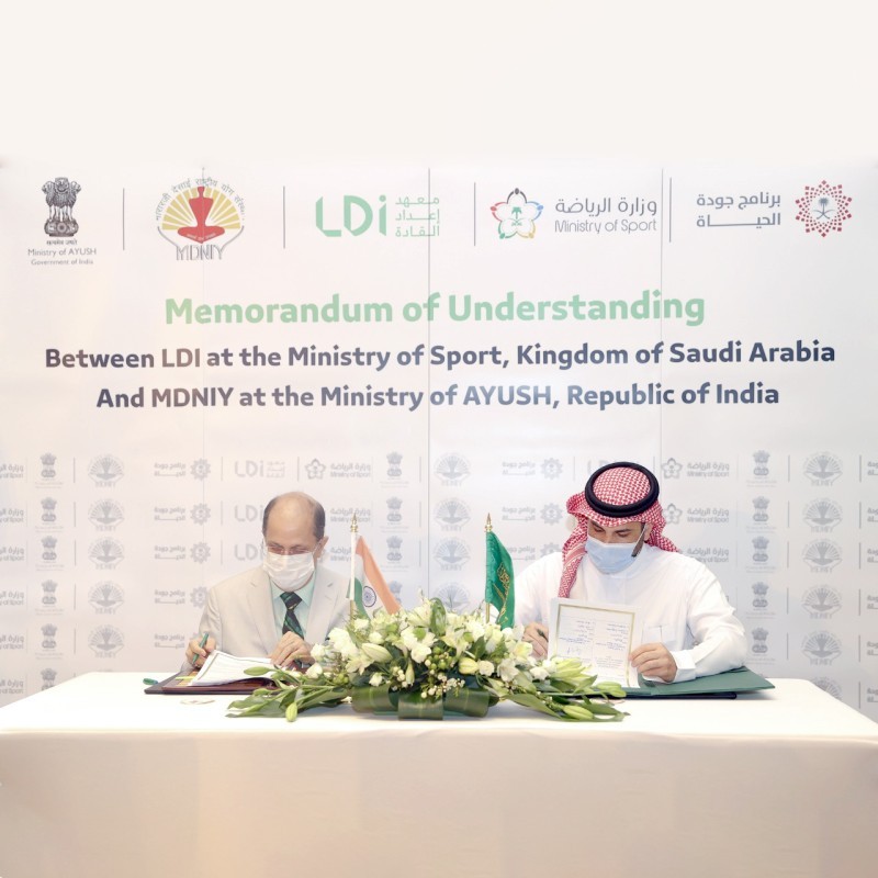 يعد توقيع مذكرة تفاهم في مجال التعاون لليوغا بين البلدين بمناسبة اليوم العالمي لليوغا في 21 يونيو 2021 تطوراً بارزاً في مجال الرياضة والثقافة في المملكة العربية السعودية. ومذكرة التفاهم الموقعة بين وزارة يوغا والطب التقليدي (آيوش) بحكومة الهند وتنمية القادة، ووزارة الرياضة بالمملكة العربية السعودية تضفي الطابع الرسمي على ترويج اليوغا كنشاط رياضي، وتمهد الطريق لإنشاء معايير ودورات رسمية في المملكة مع مثل هذه الخطوة التي يتم اتخاذها لأول مرة من قبل أي دولة في منطقة الخليج. كما ستقوم مذكرة التفاهم بتسهيل التعاون في البحث والتعليم والتدريب في مجال اليوغا.