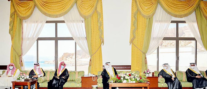 الأمير فهد بن سلطان خلال لقائه أمس في محافظة حقل، عددا من المواطنين ومديري الإدارات الحكومية. (واس)