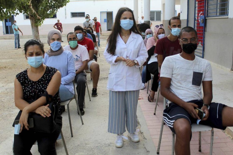 طابور منتظري اللقاح في إحدى ضواحي العاصمة التونسية. (وكالات)