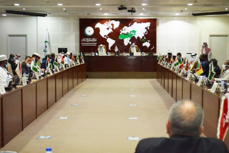 المندوبون الدائمون لمنظمة التعاون خلال اجتماعهم بجدة أمس. (واس)