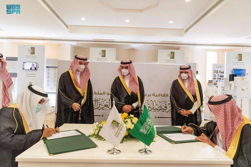 كما دشن المعرض الدائم لجامعة الجوف الذي يحوي العديد من أركان العمادات والوحدات، مستمعا من وكلاء الجامعة لشرح عنه وأهم الإنجازات التي حققتها الجامعة في مجال الجودة والبحث العلمي والتعليم، كما شهد سموه توقيع مذكرة تعاون مشترك بين جامعة الجوف وبنك البلاد.