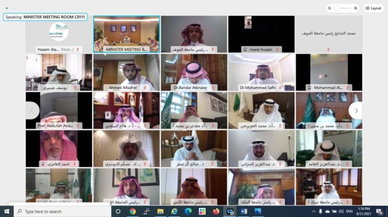 وقدّم وزير التعليم في بداية اللقاء الشكر والتقدير للقيادة الرشيدة على دعمها المستمر للتعليم الجامعي، وجهودها في الحفاظ على استمرار العملية التعليمية لأبناء وبنات المملكة رغم ظروف جائحة كورونا، كما شكر رؤساء الجامعات الذين انتهت فترة تكليفهم، ورحّب بالوكلاء المكلفين الجدد، متمنياً لهم التوفيق.