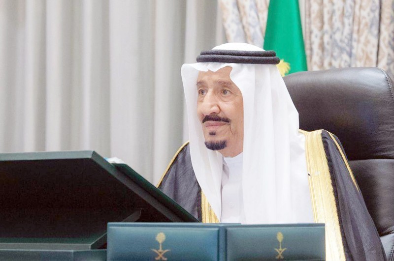خادم الحرمين الشريفين خلال ترؤسه جلسة مجلس الوزراء أمس. (واس)