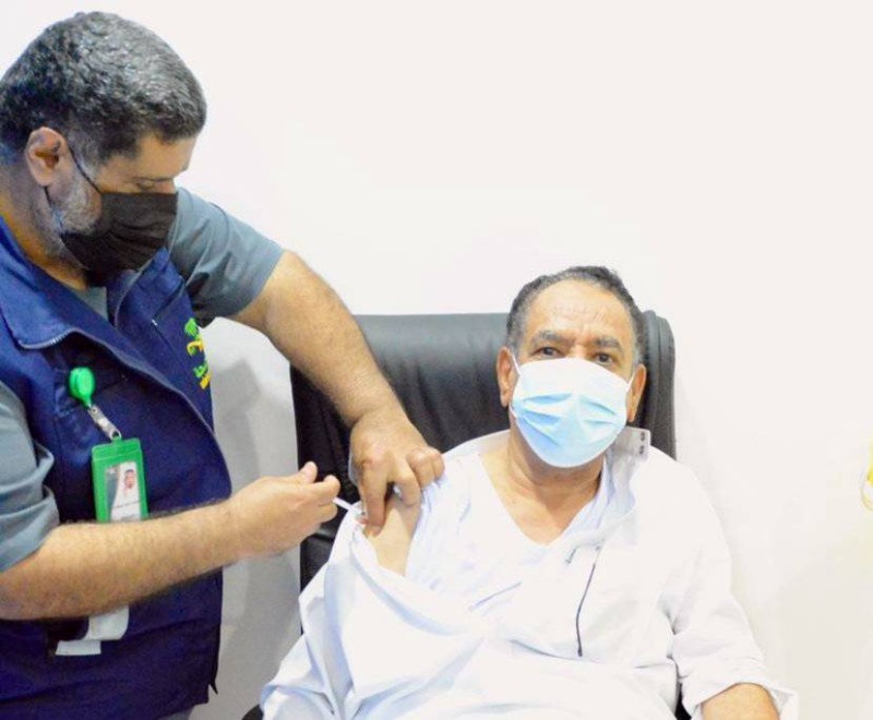 مواطن يتلقى لقاح فايروس كورونا في أحد المراكز الصحية بمنطقة جازان. (موقع الصحة)