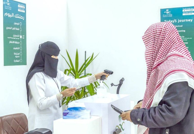 مواطن ينهي إجراءات حصوله على لقاح كورونا في الباحة. (واس)