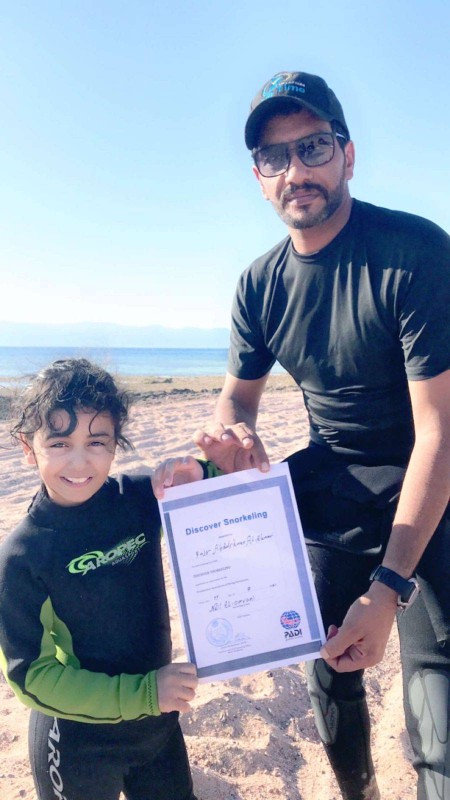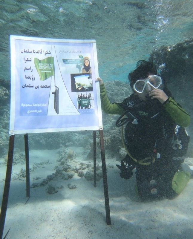 حطمت الطفلة السعودية فجر الأحمري (8 سنوات) رقما قياسيا جديدا في مجال الغوص بالمياه المفتوحة كونها أول وأصغر طفلة سعودية بهذا العمر تدخل مجال الغوص تحت الأعماق، وهي تحمل رسالة شكر للملك سلمان وولي عهده الأمير محمد بن سلمان نيابة عن المرأة السعودية بهذا الوطن، وذلك بعد أن تم توفير كافة الفرص لهن في شتى المجالات لخدمة المجتمع من خلال العمل بالمؤسسات الحكومية وقطاعات الدولة وقيادة السيارة وغيرها من المجالات الكفيلة بحياة كريمة. كما نقلت الطفلة فجر رسالة عفوية شفهية لجميع النساء بدعمها لتواصل مسيرتها الرياضية في مجال الغوص، وذكرت أن الفضل بعد الله يعود لقدوتها في مجال الغوص شقيقها الغواص الأصغر عربياً (بتال) الذي سبقها وحقق اللقب بعمر 5 سنوات وساهم بتشجيعها وتدريبها لخوض هذه التجربة، وكذلك للأكاديميات الرياضية العسكرية بتبوك التي فتحت المجال لتدريبها وزميلاتها بالأكاديميات، ولمدربهم نايل العمراني الذي سطر الإبداع في إيصال المعلومات الدقيقة والمهارات المتقنة بكل سهولة إليهم، وللكابتن موسى مشيخي مدرب الغوص والفري دايف وكافة المرافقين برحلة التدريب والغوص. وقد شاركت هي والبطل بتال فرحة الوطن بعيده 91 بلوحة تحمل صورة الملك سلمان والأمير محمد بن سلمان ورفعا راية التوحيد بالأعماق، وأكدت الغواصة فجر أنها ستواصل الجد والاجتهاد في الوصول للأرقام القياسية والمشاركة بالمنافسات سواء محليا أو خارجيا بهدف رفع الراية الخضراء خفاقة وإثبات بأن المرأة السعودية ناجحة متى ما وجدت الدعم والتشجيع بكافة المجالات.