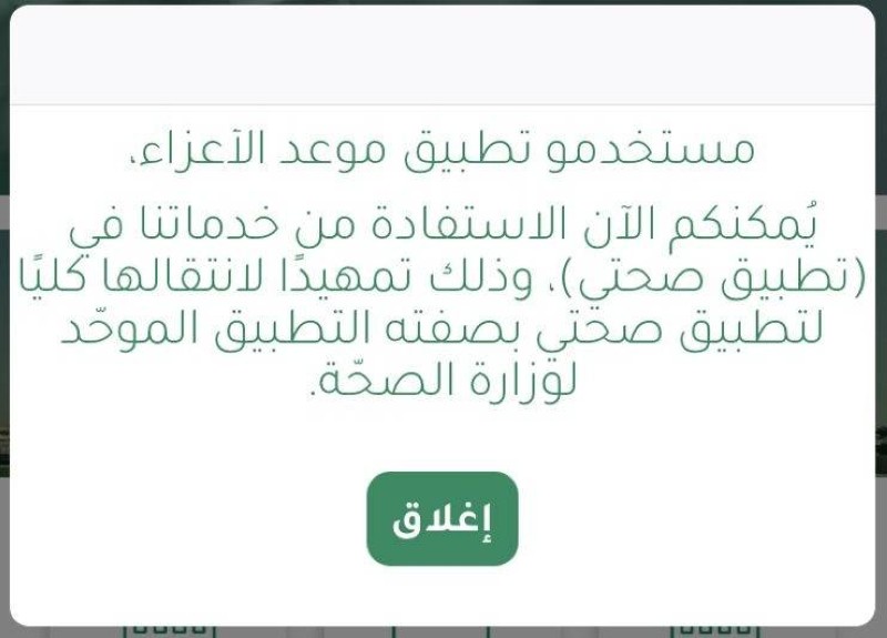 أعلنت وزارة الصحة، اعتزامها نقل كافة الخدمات التي يوفرها تطبيق «موعد» إلى تطبيق «صحتي» بصفته التطبيق الموحد للوزارة، موضحة أنه يمكن الاستفادة من خدمات «موعد» في تطبيق «صحتي».